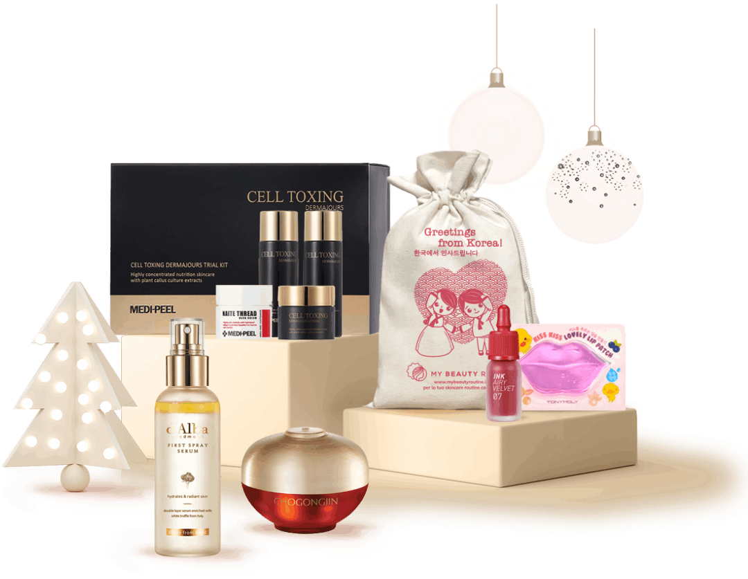 Cosmetici coreani in mini taglia racchiusi in deliziosi cofanetti.