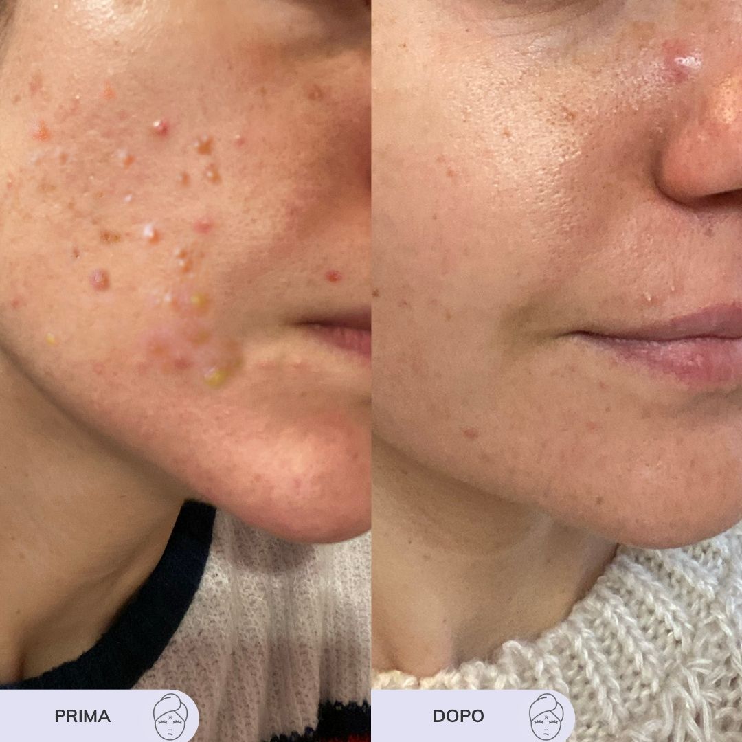 Ogni pelle è diversa, ma già dopo 3-4 settimane potresti notare meno brufoli, rossori e lucidità.